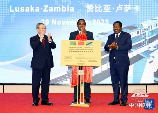 當地時間11月20日,國務院總理李強在盧薩卡同贊比亞總統希奇萊馬、坦桑尼亞副總統恩欽比共同出席坦贊鐵路激活項目開工儀式。中國鐵建董事長戴和根應邀參加并發言。