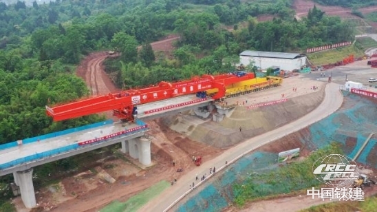 5月16日,首片長32.6米、重697噸的雙線箱梁于成渝中線鐵路重慶段大足石刻站四線道岔特大橋精準架設,標志著中鐵十四局參建的成渝中線重慶大足段正式進入架梁階段,有效推進成渝中線鐵路建設進程。