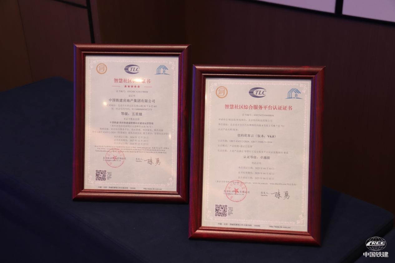 貴陽鐵建城項目榮獲“五星級智慧社區(qū)”認證證書(中鐵地產(chǎn)貴州公司 供圖)