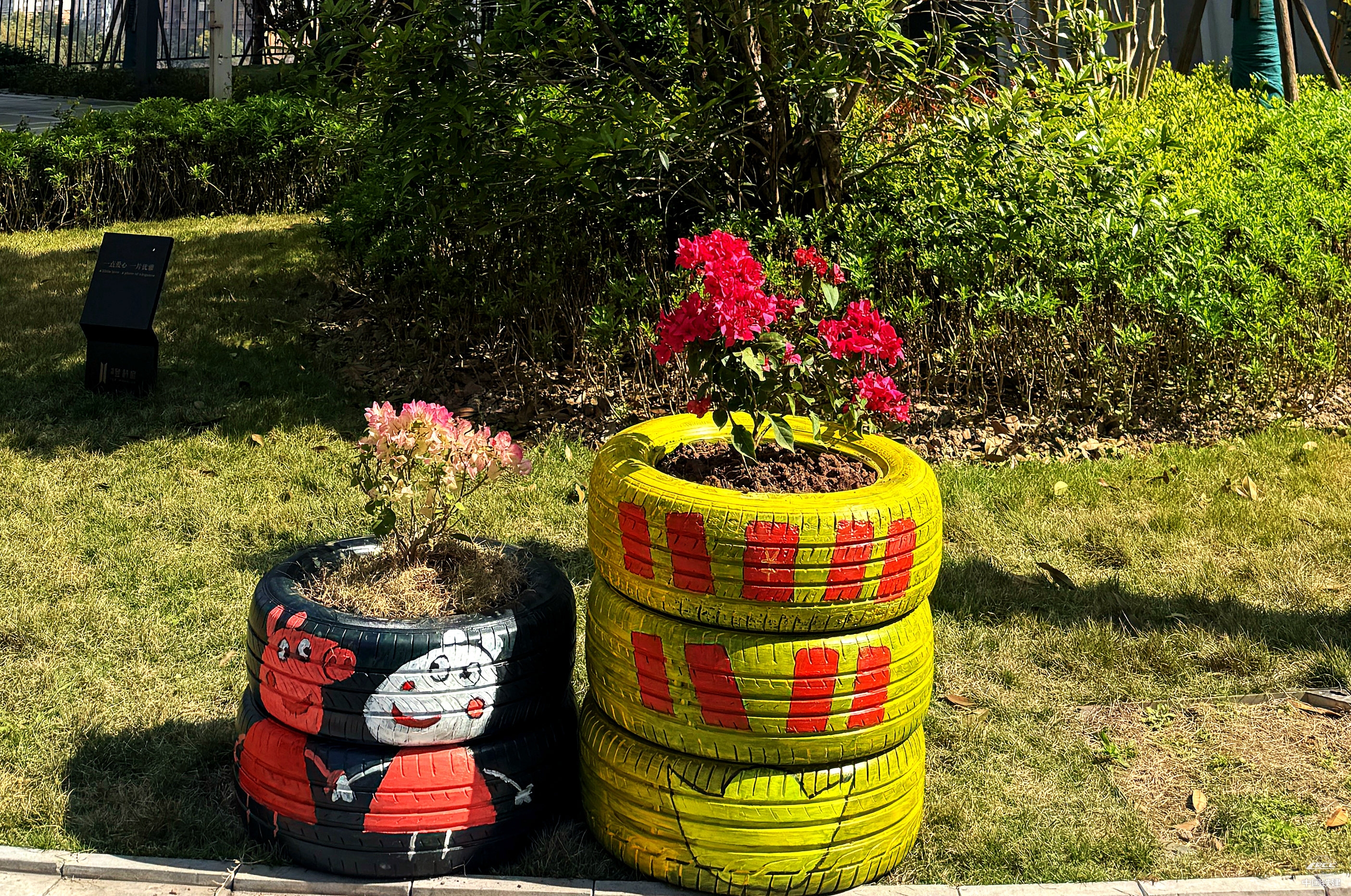 利用廢棄輪胎打造園區小景(李燕 攝)