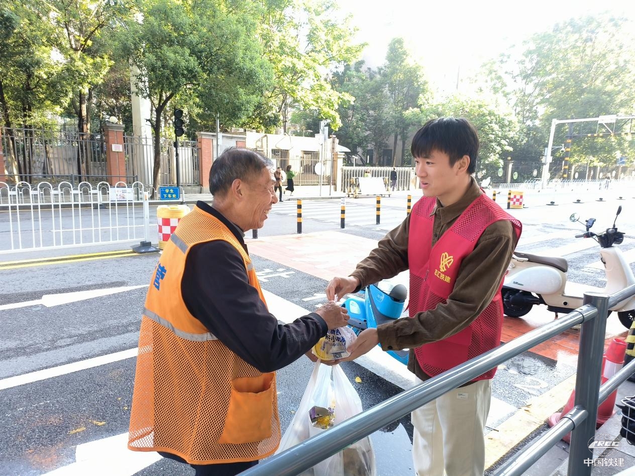 “瀟湘紅鐵軍”青年志愿者為環(huán)衛(wèi)工人送去“愛心早餐”(中鐵地產(chǎn)中南公司 供圖)