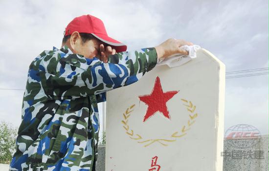 17日清晨,在烏蘭縣革命烈士陵園,參觀人員在烈士紀念碑前重溫了入黨誓詞,高唱《鐵建員工之歌》,并為烈士清理墓碑。“老戰友,我來看你來了……”擦拭著戰友的墓碑,老鐵道兵汪永漢不禁流下了眼淚。期間,他們偶遇從湖北襄樊來祭奠英烈的鐵十師50團老鐵道兵,老戰友再相逢,回首崢嶸往事,感慨不已。
