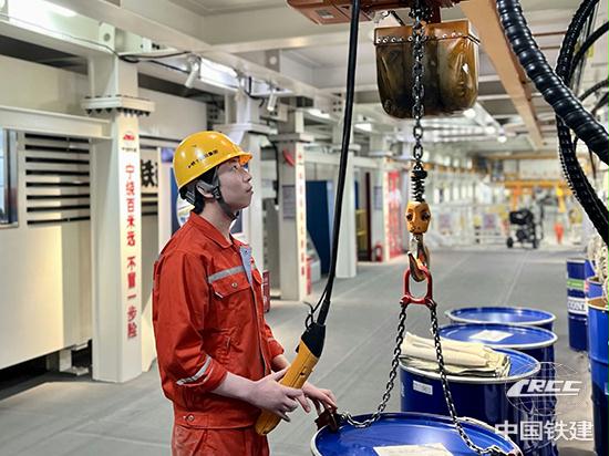 圖9:留守工人正在更換盾尾油脂,防止盾殼外部水和砂漿等流體進(jìn)入盾構(gòu)機(jī)內(nèi)部,保障盾構(gòu)機(jī)正常掘進(jìn)。(李桂香?攝)