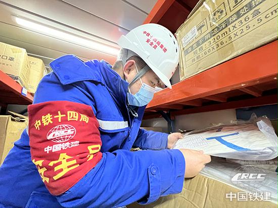圖4:項目安全部副部長李翔對疫情防控物資進(jìn)行清點,確保春節(jié)期間防疫物品儲備充足。(宗悅?攝)