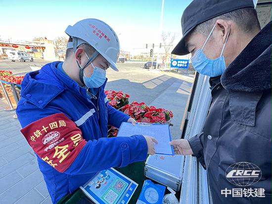 圖5:項目安全部副部長李翔在疫情檢查防控站核查人員進(jìn)出登記信息,守好項目大門。(宗悅?攝)
