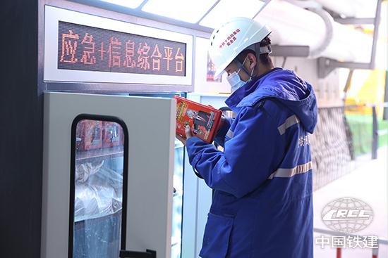 圖7:項目安全員游亞坤在認(rèn)真檢查隧道內(nèi)應(yīng)急物資儲備柜的物資儲備情況。(宗悅?攝)