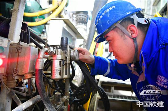 盾構(gòu)掘進主管于俊承巡檢設(shè)備運行狀況(劉福昌 攝)