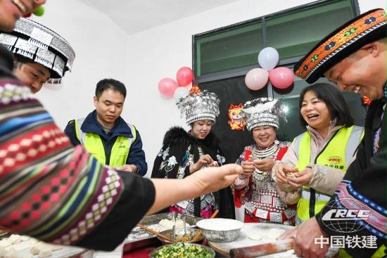 近日,中鐵十七局渝湘高鐵重慶至黔江段項目部漢、苗、土家三族職工一同貼春聯、掛燈籠、打糍粑、包餃子,喜迎春節的到來。渝湘高鐵重慶至黔江段是國家中長期鐵路網規劃“八縱八橫”中廈渝通道的重要組成部分,為保障3月初全線無砟軌道順利施工,早日實現通車目標。今年春節,項目集結團結班組,共有40余名職工堅守項目工地過春節,加速工程建設。項目在建設期間積極推進勞務用工屬地化,吸納當地少數民族工人組成團結班組,并實行一對一“導師帶徒”。3年時間里,30余名少數民族員工紛紛學有所成,成為有技術、文化的產業工人,有效解決當地少數民族青年就業問題,助力鄉村振興。