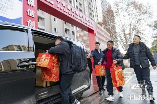 工人踏上“返鄉專車”(中鐵建設城更金華置業公司 供圖)