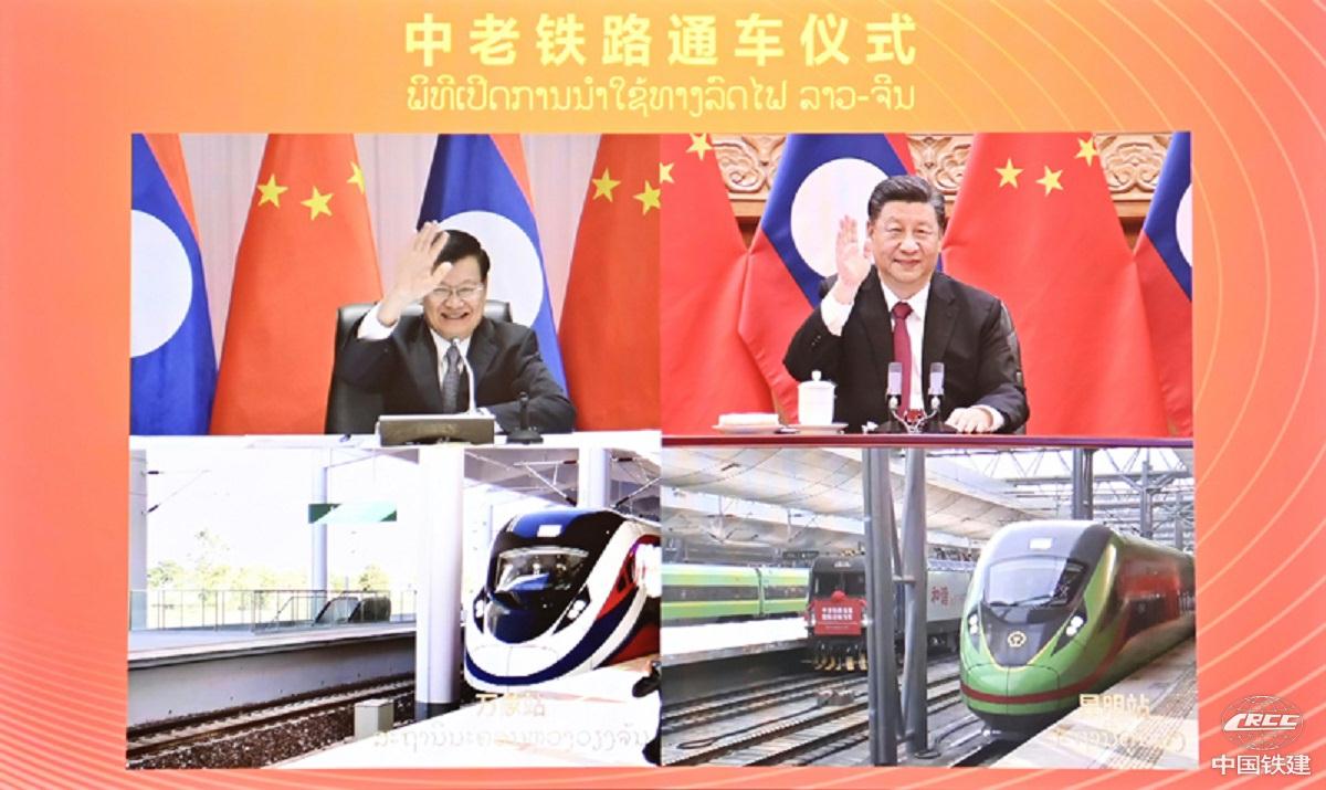 2021年12月3日,習近平同老撾人民革命黨中央總書記、國家主席通倫共同出席中老鐵路通車儀式