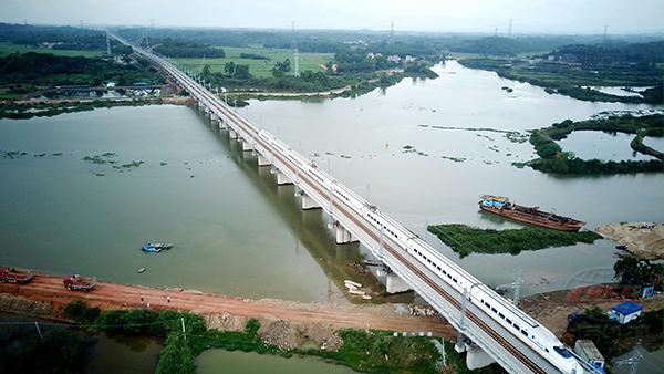 動(dòng)車(chē)從中鐵二十三局承建的豐頭河大橋通過(guò)