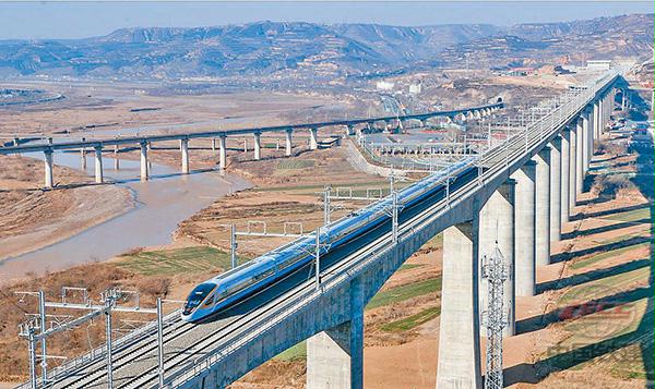 2020年12月26日,由鐵一院總體勘察設(shè)計(jì),中鐵十一局、中鐵十二局、中國(guó)鐵建大橋局、中鐵十四局、中鐵十六局、中鐵十九局、中鐵二十一局、中鐵二十二局、中鐵建電氣化局等單位參建的我國(guó)首條一次性建成里程最長(zhǎng)的有砟高鐵——銀西高鐵全線通車(chē)運(yùn)營(yíng)。(楊丙峰 攝)